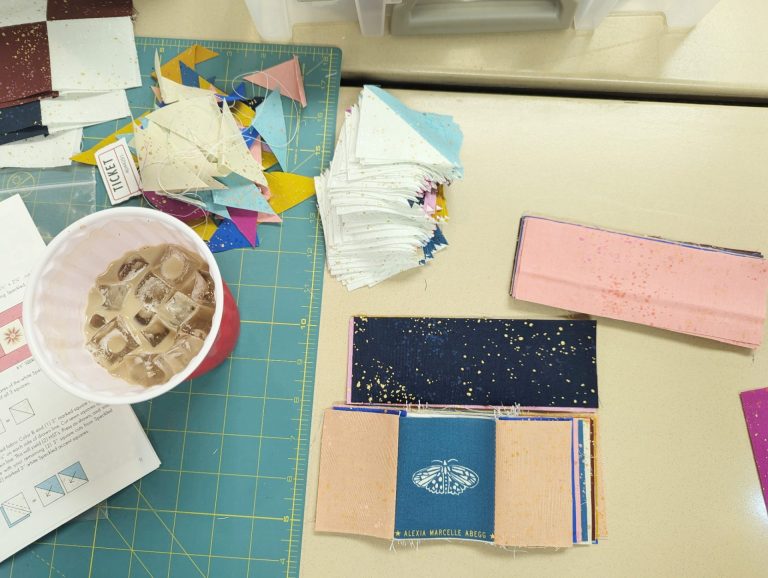 Bring some bonus HSTs or scrap squares to work on between seams of your main project. You’ll be amazed how much progress you make without even trying!