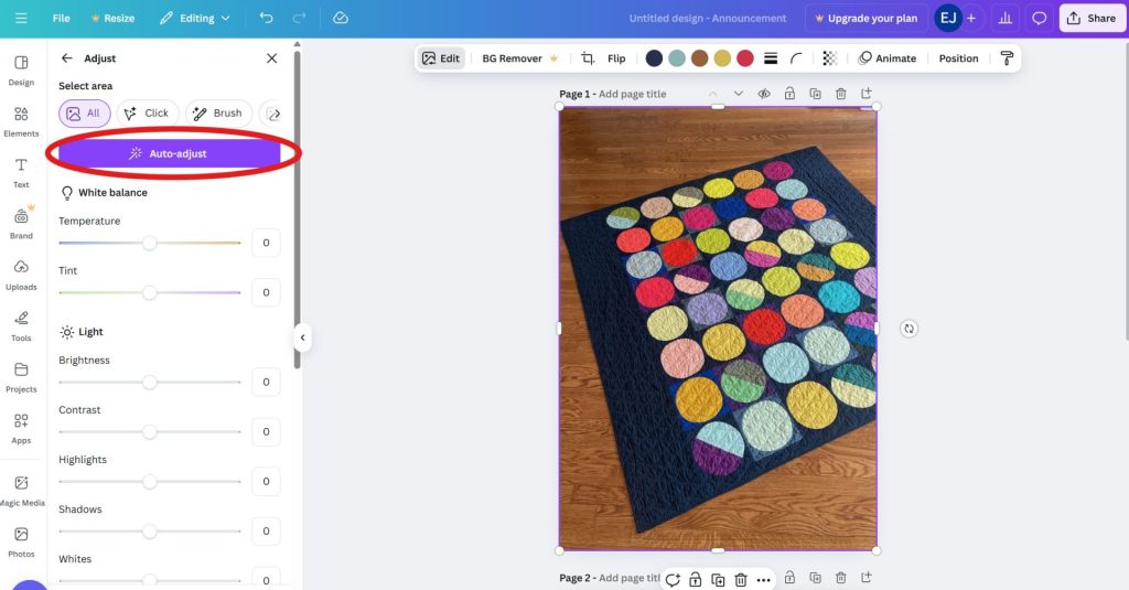 - Tap to focus on your quilt and adjust exposure by sliding your finger up or down