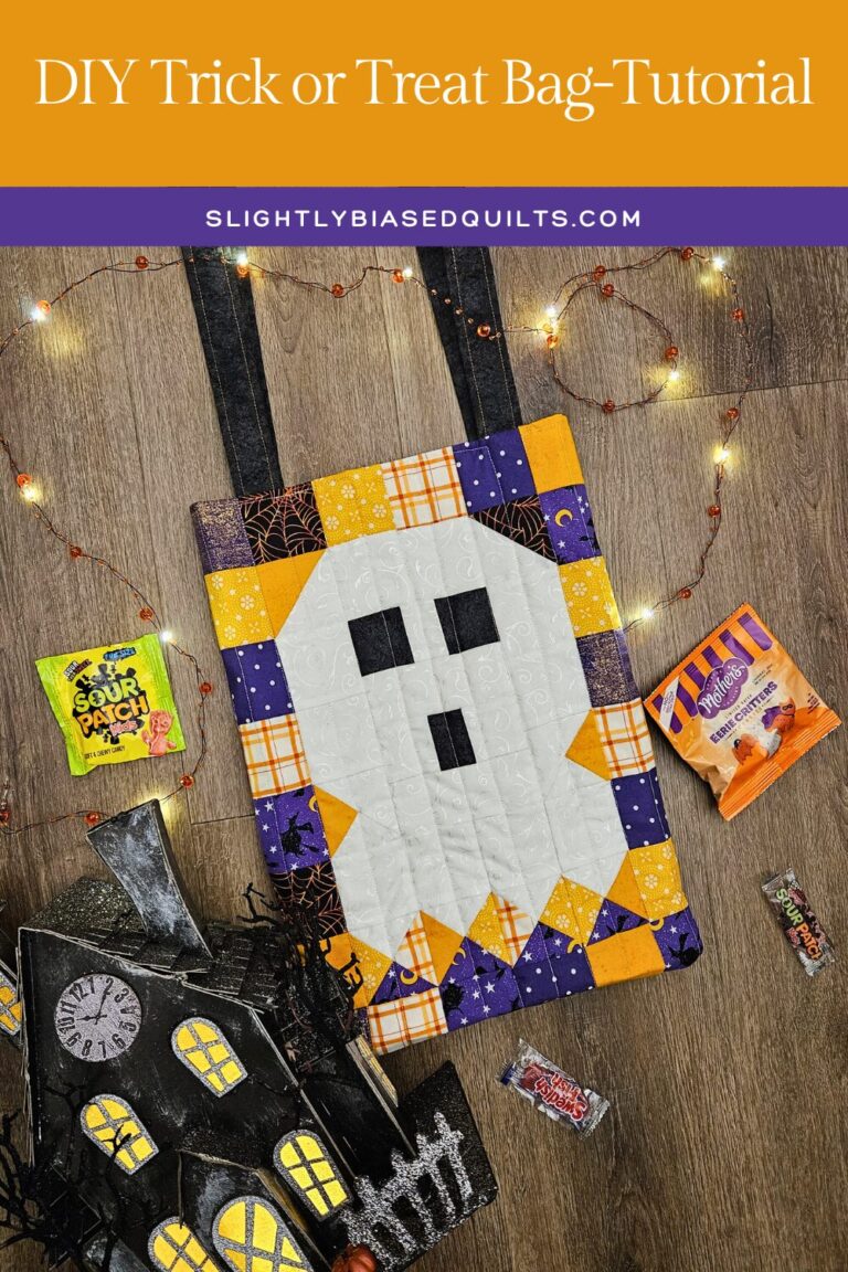 Your Casper Trick-or-Treat Bag is ready for Halloween adventures! This beginner-friendly project is a great way to practice piecing triangles and basic bag construction. Share your makes on social media with #slightlybiasedquilts. For more patterns, visit www.slightlybiasedquilts.com.