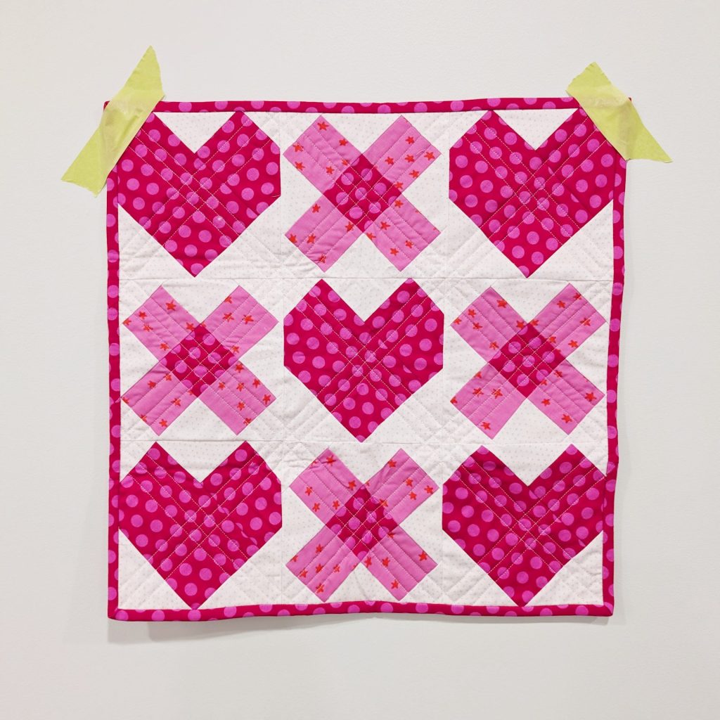 If you love tiny quilts with big personality, you’re going to love my newest pattern: Cordate Mini Remix! This sweet little project takes the heart-forward vibe of the original Cordate Mini and gives it a playful remix — swapping in a mix of hearts and X’s for a modern, Valentine-adjacent look.